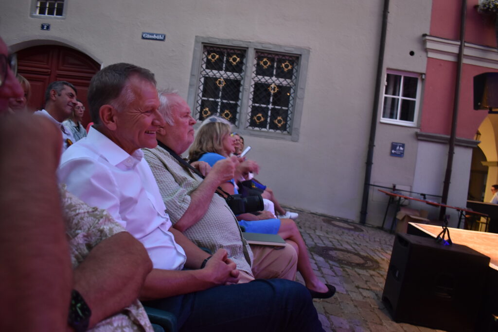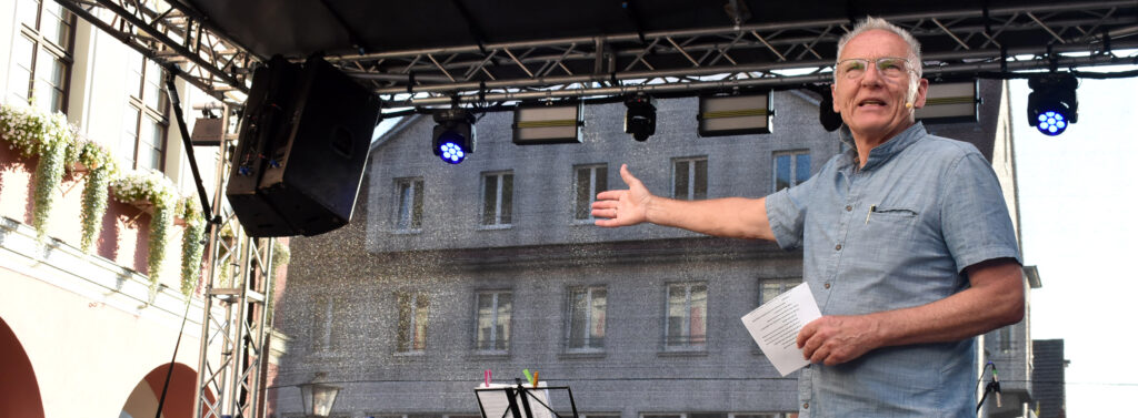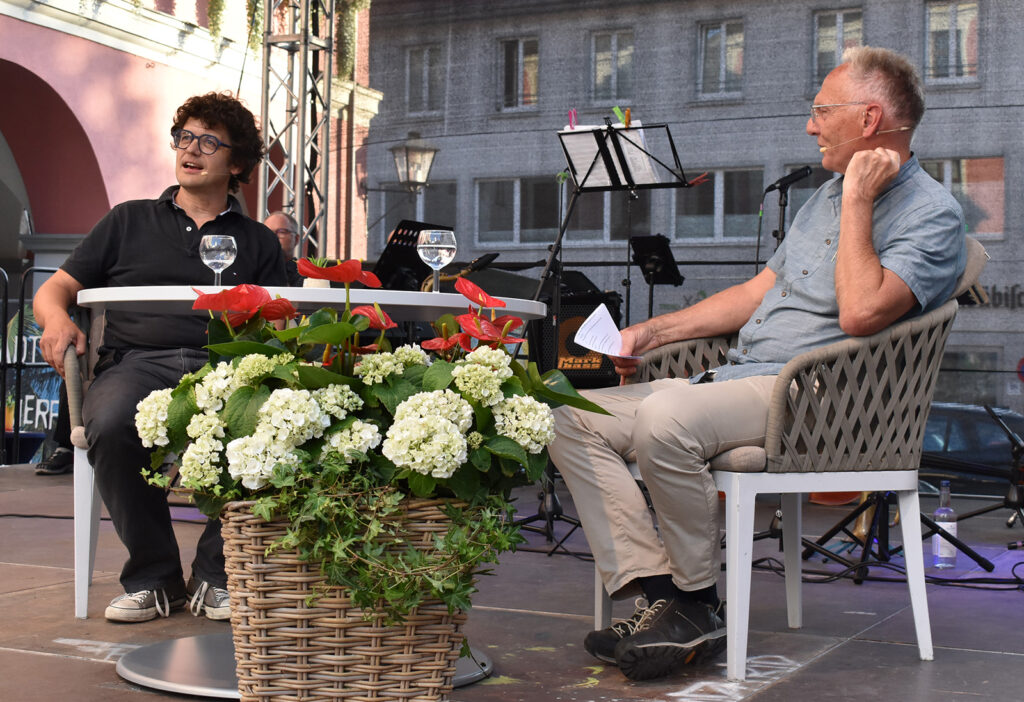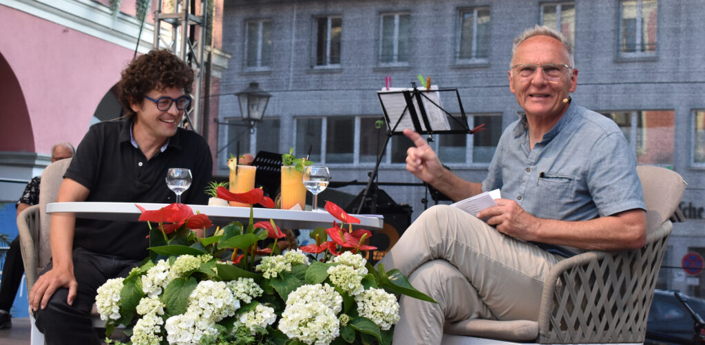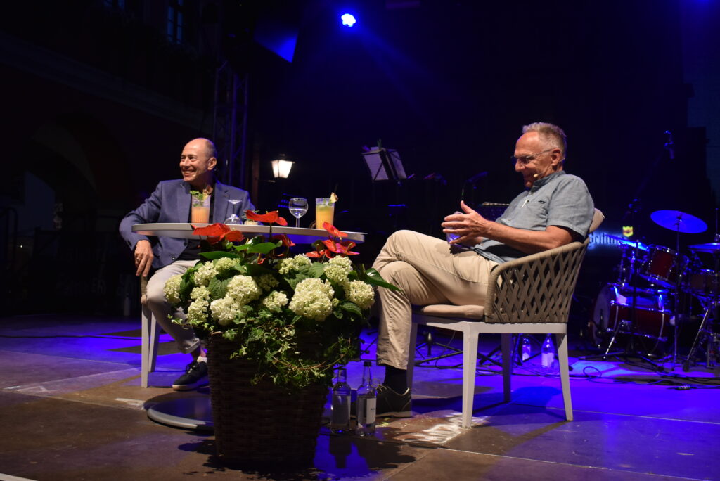 Leutkirch – Und wieder gab es einen wunderschön-lauen Sommerabend am Gänsbühl vor der ALSO-Bühne mit Hunderten von interessierten Gästen. Am Montagabend (11.8.) hieß es Talk vorm Bock – mit drei Leutkircher Köpfen. Bernd Dassel, vor 25 Jahren der Initiator für einen Talk im Bocksaal, sagte damals über seine Motivation: Ich möchte Leute mit Geschichten interviewen, sie müssen nicht berühmt sein, sondern was zu erzählen haben. Ja, zu erzählen hatten sie etwas, die Talk-Gäste vom ALSO-Montag.