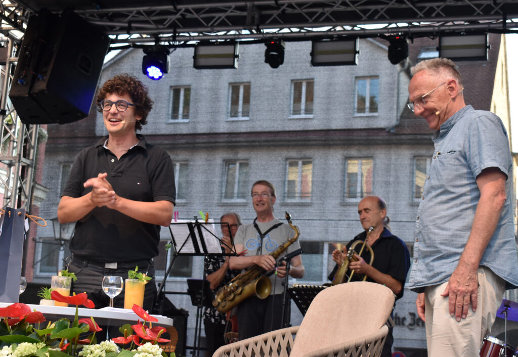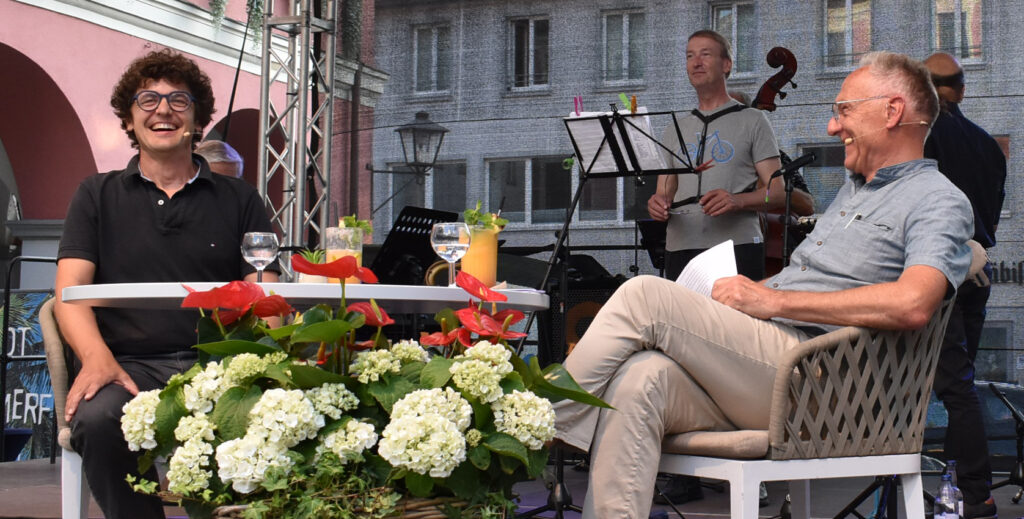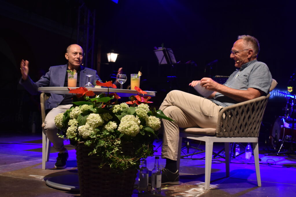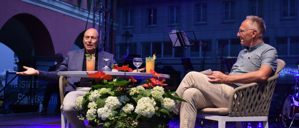 „Sag mal meinen Nachnamen“, forderte Tezer den Moderator auf, denn eigentlich kennt man den dritten Talkgast nur als Tezer in Leutkirch. Er ist hier aufgewachsen, zur Schule gegangen und hat eine Lehre als Elektriker gemacht. Ein „Hans-Dampf in allen Gassen“ ist er, vor allem im Sommer, wenn das ALSO, das Altstadt-Sommerfestival, ansteht. Von Anfang an war er dabei und hat mit Christian Skrodzki das ALSO etablieren können. Er war Zweiter Vorstand, dann 16 Jahre lang als ALSO-Chef „hinten und vorne“, hatte die ganze Verantwortung, ehrenamtlich. „Sylvia ist die perfekte Nachfolgerin, sie macht es sehr gut“, lobte Tezer die Nachfolgerin Sylvia Hess und die ganze Familie Hess. Inzwischen sind es beim ALSO zwölf Tage Programm mit 60 Veranstaltungen und rund 35.000 Besuchern – „‘s isch echt itt schlimm“, habe man einst zu Tezer gesagt, um ihm die ALSO-Organisation schmackhaft zu machen.