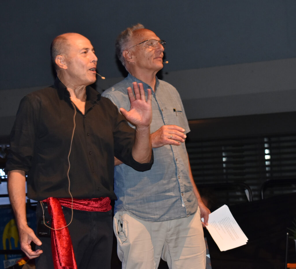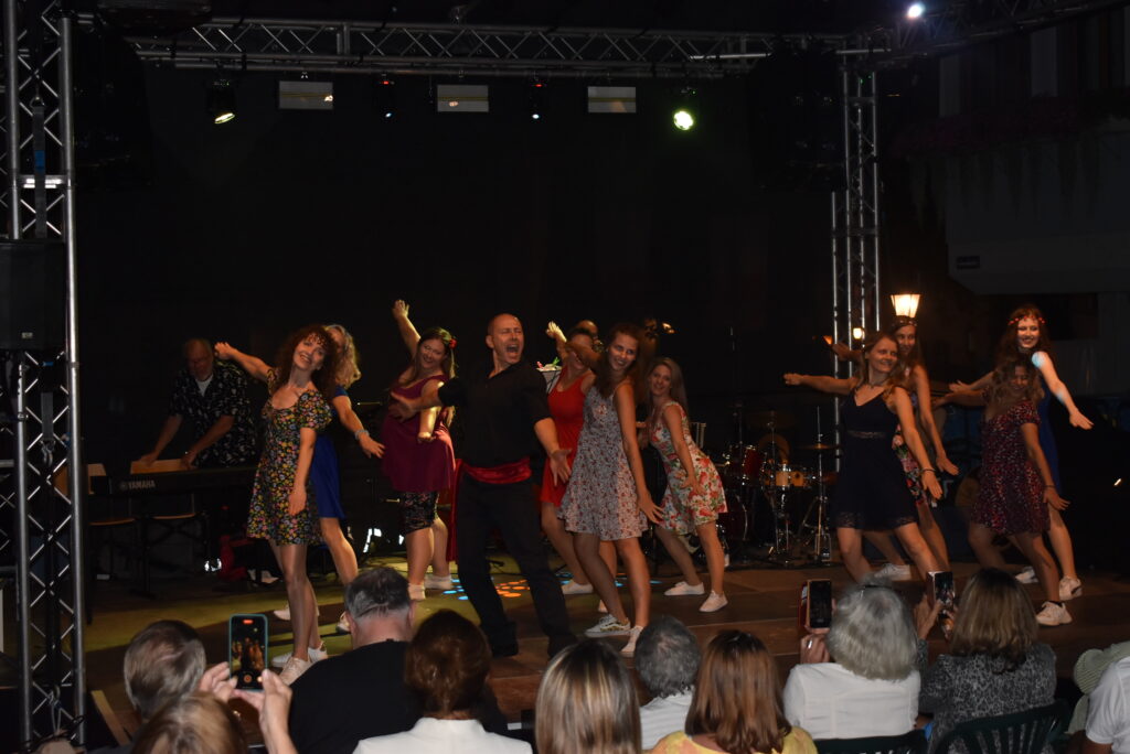 Ungewöhnlich bei einem Talk, aber machbar, und so darf Joachim Rogosch eine Tanz-Performance ansagen. Rhythmische Salsa-Musik wird aufgedreht, die Lichtershow geht an, das BBB-Team rockt die Bühne. Viele Mädels und ein Mann – Tezer im Element, der Hüftschwung sitzt, die Choreografie perfekt, dank Gabi Lipp, beide sind seit Beginn bei der BBB-Dance-World.