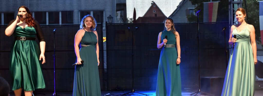 Eine besondere Note, im wahrsten Sinne, hatte der grandiose A-Cappella-Gesang der männlichen Seite von JoV, mehr-stimmig-er geht nicht. „Ja – es war eine Aufgabe – mühsam, aber es hat sich doch gelohnt“, frozzelte Angelika Maier ein bisschen, und schloss sich dem Beifall der Showbesucher an.