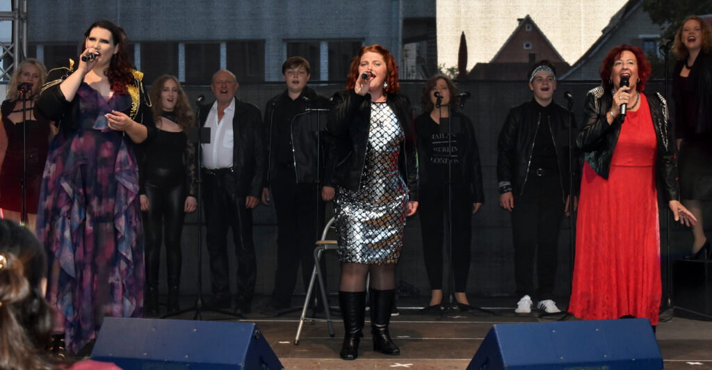 Der langjährige ALSO-Chef Tezer Leblebici und die neue Vorsitzende Sylvia Hess waren persönlich an der Kasse, um die Menschenschlange davor ganz schnell zu bedienen, oft reichte ein Klick mit dem Handy; der Platz füllte sich, ab 19.30 Uhr ging es rein in den Flieger zur „Traum-Flug-Reise“ (so das Leitmotiv des Abends) in „Welt des Show-Biz“, in die große weite Welt der bekannten Musicals, in die Geschichte des weltweiten Rock und Pop, in die Welt des kunstvollen Gesangs inklusive glitzernder Kostüme, wundervoller Stimmen, großartiger Performences.
