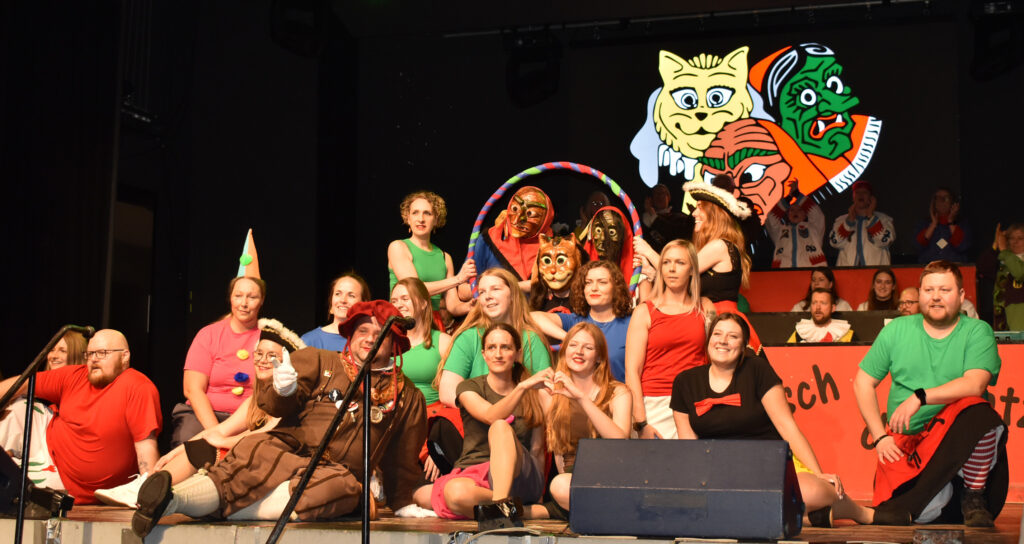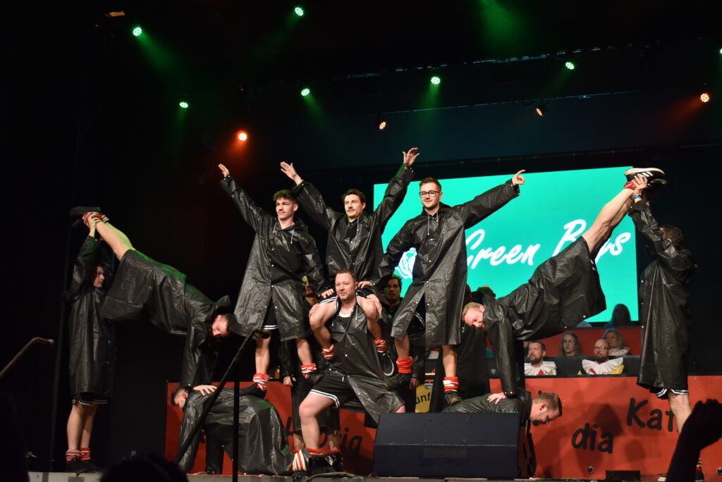 Ein besonderer optischer Leckerbissen war wieder der Auftritt der Green Boys mit etlichen jungen Männern aus der Gruppe der Grünen Hexen, die 2026 ein närrisches Jubiläum feiert: 66 Jahre jung sind sie. Das Publikum klatsche und feierte die Jungs, die einen toll einstudierten Tanz zeigten, unter anderem zum Song „Umbrella“. Auch hier war eine Zugabe fällig, und das entblößte Hinterteil mit rotem String-Tanga war nach der letztjährigen Vorstellung fast ein Muss. Prinzessin Sabrina verteilte nach fast jedem Auftritt Narren-Orden an die Akteure.