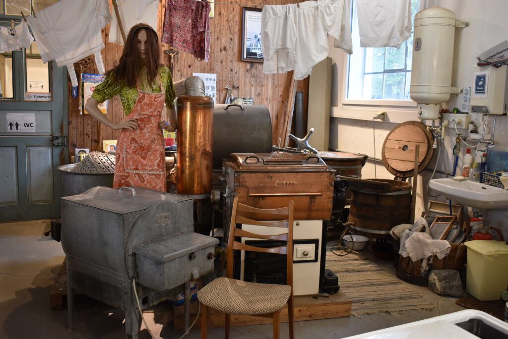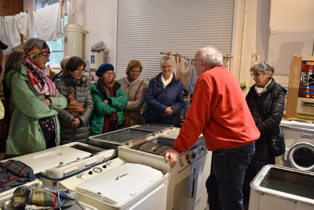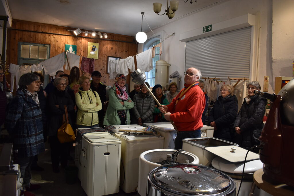 Über 1500 Elektrogeräte sind im Museum ausgestellt, das durch einen Verein und Familie Manfred und Monika Stör betrieben wird; über 700 Geräte sind voll funktionstüchtig. Zunächst berichtete Manfred Stör sehr amüsant über das umständliche Waschen von früher, vom ersten Waschbrett, über Trommelwaschmaschinen bis zum modernen Vollautomaten. In manchen Maschinen hätte man auch Kartoffeln kochen oder gar Beton anmischen können, bemerkte er. Die meisten Waschmaschinen im Museum sind aus Haushalten von Leutkirch, wie ein Gerät aus Kupfer oder Edelstahl.
