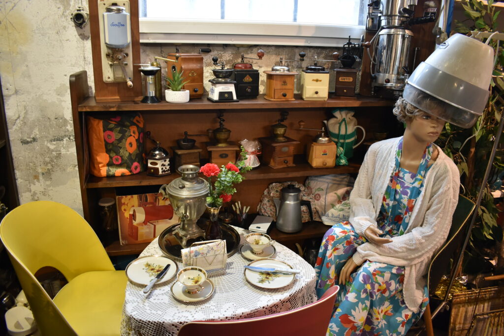 Geräte, mit denen man backen, kochen, rühren oder mixen konnte gab es schon früher, Thermomix sei keine neue Erfindung, lässt Stör verlauten und führte einige Beweisstücke vor. Ein Staubsauger eignete sich damals auch als Haartrockner, was er eindrücklich vorführte, sehr zur Belustigung der Besucherinnen. Das erste Telefon aus 1920 ließ er schellen, zeigte die ersten Kaffeemaschinen, die es übrigens schon seit 1878 gab. Mit einem Abstecher ins neu gegründete Kinder-Paradies sowie Erklärungen von alten Nähmaschinen endete die Führung. Die Frauenbundmitglieder freuten sich auf einen heißen Kaffee und tolle Kuchen im Museums-Wohnzimmer, serviert auf Geschirr mit Goldrand von annodazumal. Anschließend durfte man noch ins Museums-Kino, alte Filme gucken.