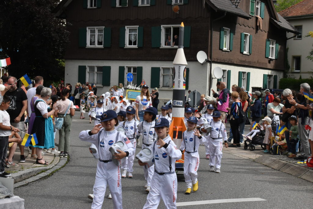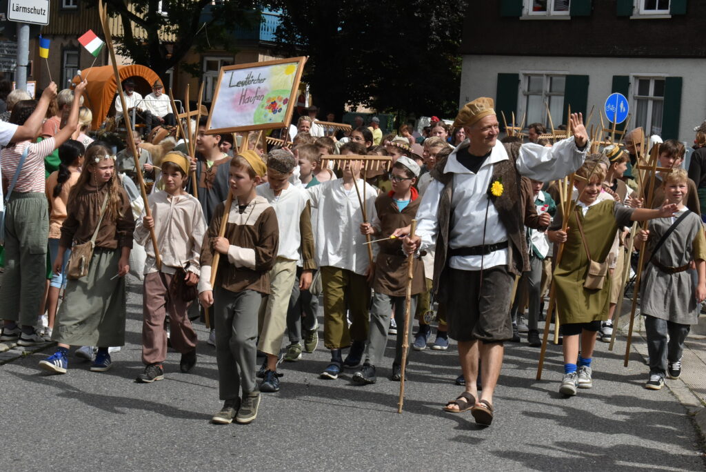 Da gab es nicht nur Weber und Gerber, Metzger und Bäcker, Näherinnen und Händler zu bestaunen, auch die Glasmacher, die Gotische Gruppe, die Schule oder den Waschtag von Annodazumal, die Marketenderinnen, die Bahnhofsgruppe, die Bierbrauer und viele mehr zeigten sich in festlich-schmucken Gewändern. Von der Frühzeit bis zur Mondlandung und zur NASA zeigten sich die Gruppen, auch Kunst und Kultur wie das Kinderfest-Theater marschierten durch die Straßen der Altstadt.
