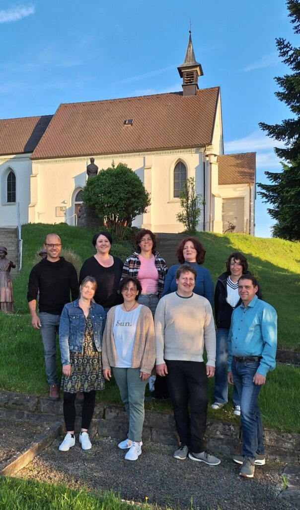 Das Team der Abendklänge aus Engerazhofen freut sich auf den Auftakt am 23. Mai um 19 Uhr an der La-Salette-Kapelle (bei schlechter Witterung in der Kirche Engerazhofen) vordere Reihe von links nach rechts: Andrea Baur, Petra Vogel, Philipp Kämmerle, Anton Lerner hintere Reihe von links nach rechts: Benjamin Sigg, Gabi Winkelhofer, Karin Raufeisen, Karin Stohr, Lisa Netzer. Foto: Benjamin Sigg