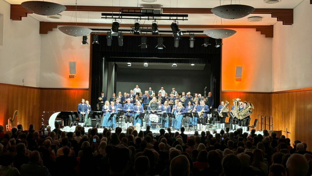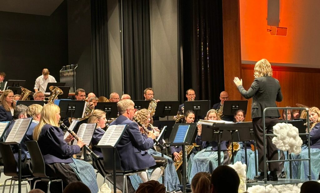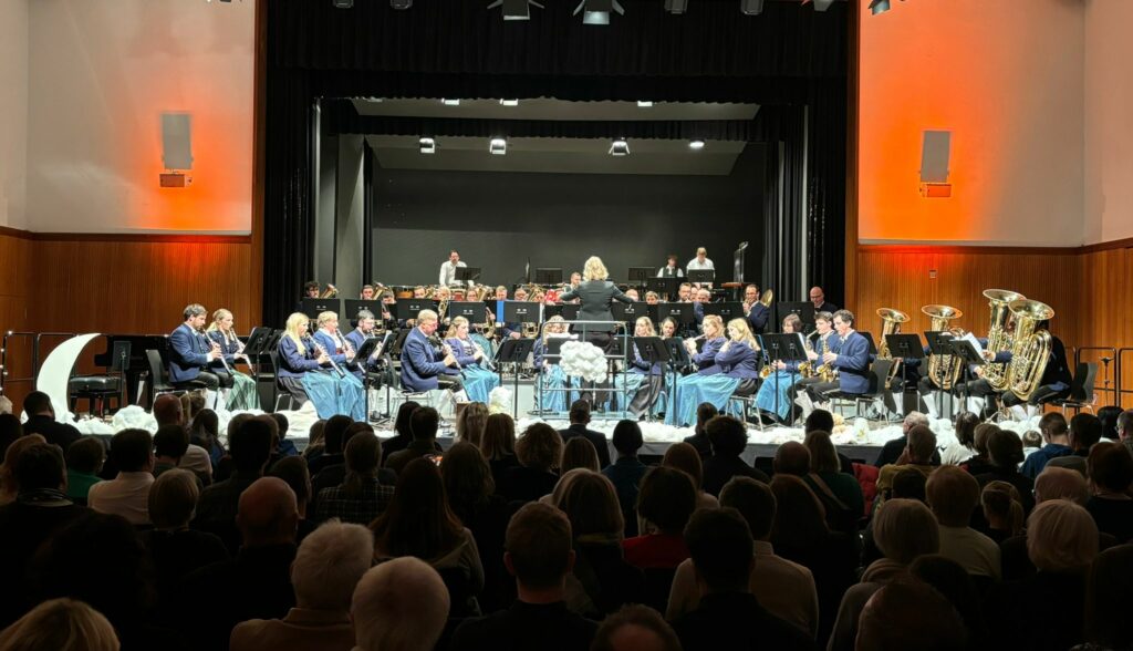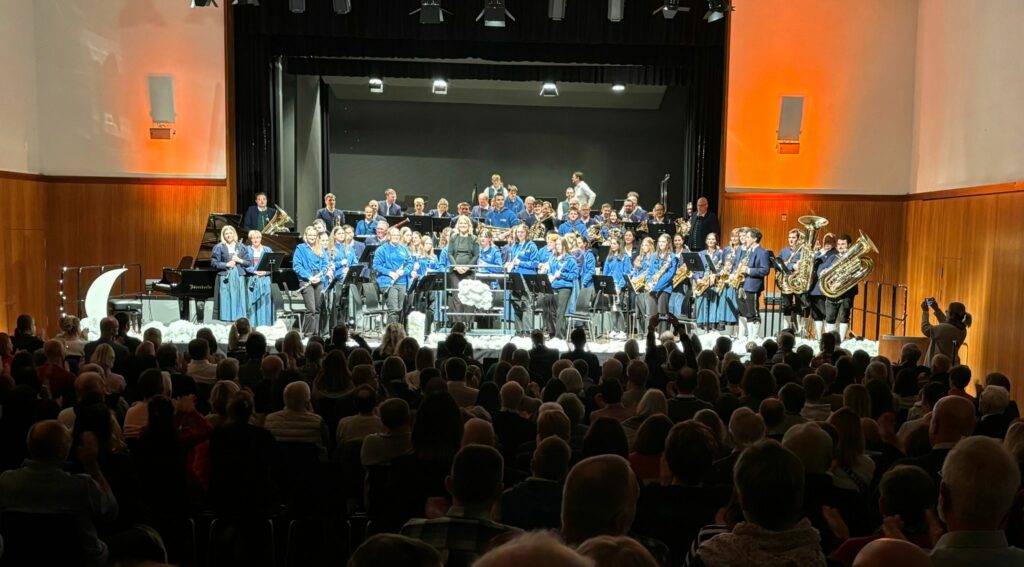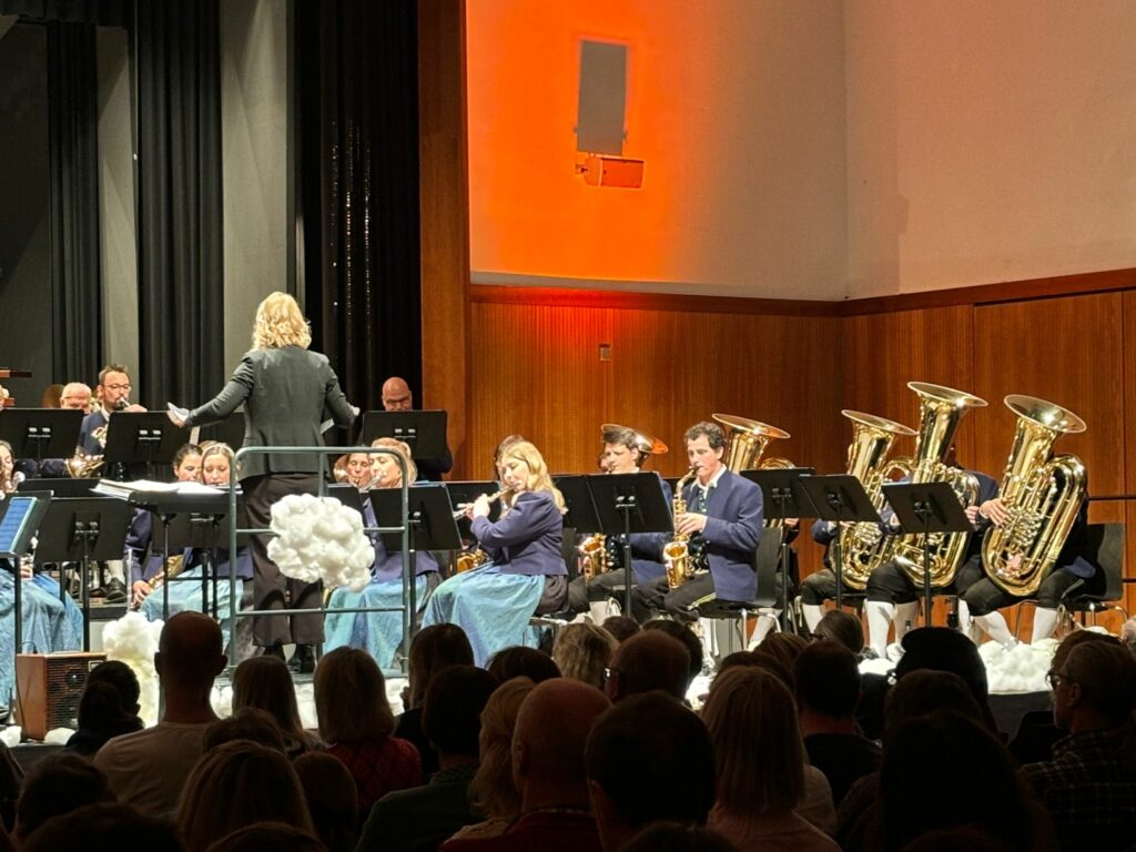 Die Stadtkapelle und das JBO präsentierten zusammen eine kreative Traumreise. Die musikalische Leitung und Auswahl der Stücke lag bei Stadtmusikdirektorin Emma Geser. Es gab viel Applaus, die Festhalle war voll besetzt, das Publikum begeistert.