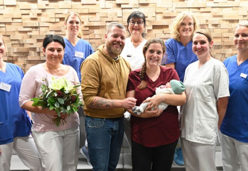Chefarzt Dr. Elmar Mauch, der der glücklichen Mutter einen Blumenstrauß überreichen ließ, und die leitende Oberärztin Dr. Katja Bräuer sehen sich in der Arbeit ihres Teams bestätigt. „Wir gratulieren Frau Brendel und Herrn Fasser herzlich und danken ihnen für ihr Vertrauen zu unserer Geburtsklinik. Die 600. Geburt ist für uns eine wichtige Zahl, weil der Kreistag den Fortbestand der Wangener Geburtsklinik im Jahr 2022 an Bedingungen knüpfte, etwa der, dass der Leistungsumfang von 600 bis 800 Geburten am Westallgäu-Klinikum stabil bleiben muss. Diese Bedingung und auch die weiteren haben wir erneut mit Bravour erfüllt und werden wir sicher auch künftig erfüllen, soweit es in unserer Macht steht“, sagte Dr. Mauch. Der Chefarzt rechnet bis zum Jahresende mit 670 bis 680 Geburten gegenüber 653 im Vorjahr – und dies bei insgesamt rückläufigen Geburtenzahlen in Deutschland. „Wir waren 14 Tage früher dran mit unserer 600. Geburt als im Vorjahr, das ist hervorragend.“