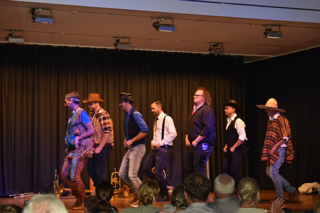 Bei ihrem Bühnenprogramm „Wild wild wäschd“ hört man nicht nur typische Westernmusik wie Ghostrieder oder das Lied vom Tod, auch passende Linedance-Rhythmen, Tanz und Gesang reissen das Publikum mit. Ob hünenhafte Scharfschützen, Mexikaner mit Sombrero, Mannetou alias Winnetou, berühmte Western-Klassiker sind im wilden Programm dabei.