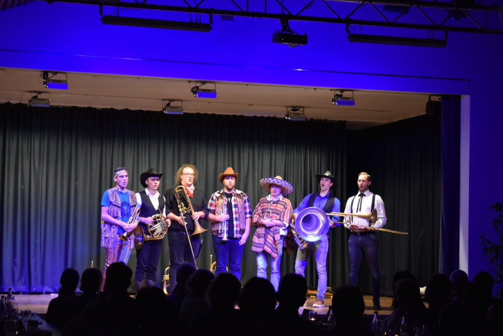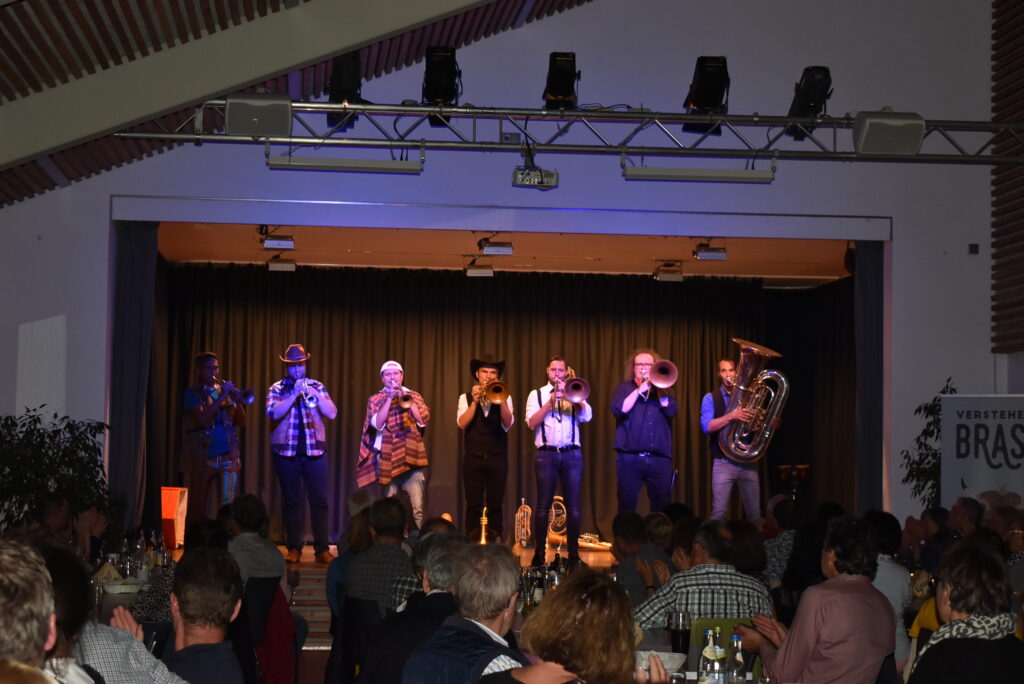 „Wer gerne lacht, schneidige Musik hört und dabei die Zeit vergessen möchte, der ist bei VERSTEHEN SIE BRASS? genau richtig!“ und das setzten die exzellenten Musiker mit Hang zur Comedy in jeder Situation mit viel Komik um. Es gab viel Applaus und Zugabe-Wünsche, dem VSB gerne entsprach und nochmals alle Pistolen / Register ihrer Kunst zeigten. Für die Bewirtung an diesem Abend sorgte das Team um Monika Heinz.
