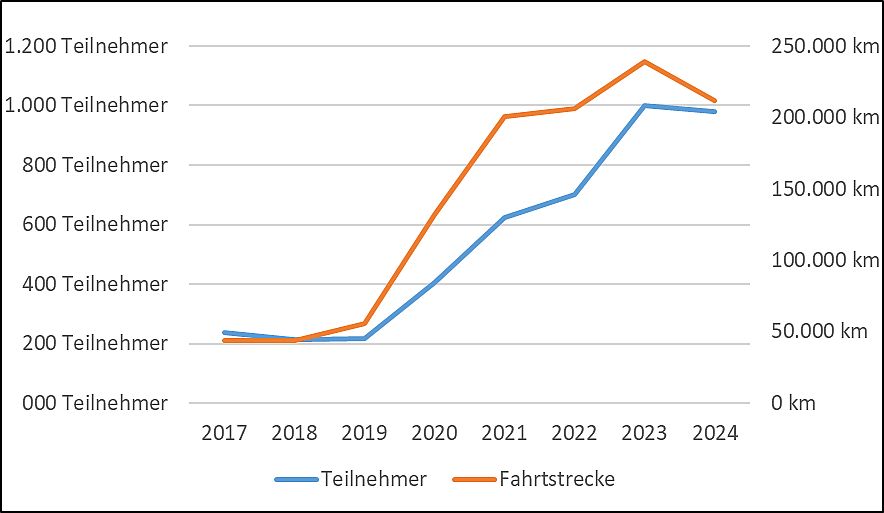 „Radfahren ist nicht nur ein aktiver Beitrag zum Klimaschutz, sondern fördert auch die Gesundheit, entlastet den Verkehr und schont den Geldbeutel,“ erklärt Michael Krumböck. Ebenfalls betont er die Bedeutung des Radfahrens für den Klimaschutz: Die in Leutkirch erradelten Kilometer haben das Klima um etwa 35 Tonnen CO₂ entlastet, verglichen mit der Nutzung von Autos. Besonders erfreulich ist, dass viele der Strecken unter 10 Kilometern lagen – typische Alltagswege, die sonst oft mit dem Auto zurückgelegt werden. Insgesamt wurden in Leutkirch 13.551 Fahrten erfasst.
