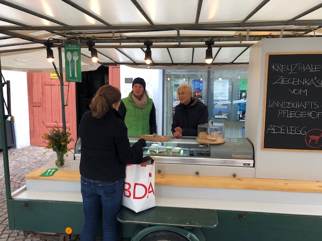 Hochwertige Milch von Ziegen der Familie Post von der Adelegg, Kartoffeln von mehreren Erzeugern aus der Umgebung, Obst, verschiedene Brotsorten von hiesigen Bäckereien – das alles lässt sich in einem kurzen Bericht über den Montagsmarkt kaum vollständig schildern.