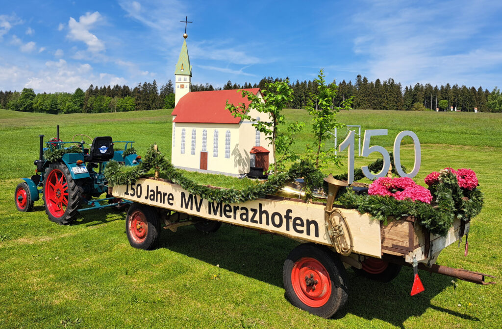 Tradition trifft Geschichte – beim Maifest des Musikvereins wird die Merazhofer Chronik feierlich vorgestellt. Unser Bild zeigt den Festwagen aus dem Jahre 2024, als der Musikverein Merazhofen 150-jähriges Bestehen feierte. Foto: KGM