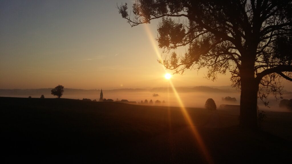 Merazhofen im Morgenlicht: Was lange im Nebel der Vergangenheit lag, wird durch die Chronik sichtbar – einige verborgene Schätze der Dorfgeschichte wurden gehoben. Foto: KGM