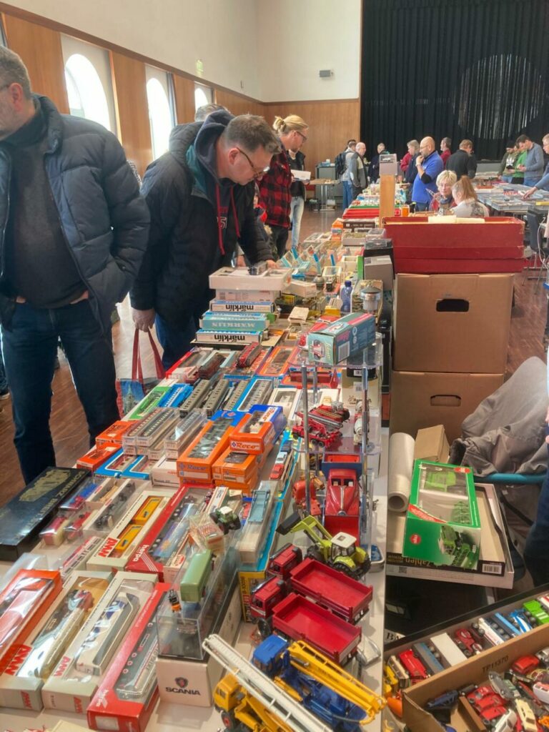 Günstige und gute Gebraucht-Ware, Ersatzteile für Modelleisenbahn und Modellautos sowie private Schätzchen können hier gekauft und getauscht werden. Auf den Besucher wartet ein umfangreiches Angebot in vielen Spuren und Größen sowie die Gelegenheit, das Gekaufte auf der Teststrecke zu prüfen. Als Besonderheit dieses Jahr zeigen die Modellbahnfreunde ihre H0 Club-Anlage Huchkirch im Foyer der Festhalle. Damit alle Besucher, vor allem die Eisenbahnfans, eine fahrende Modelleisenbahn genießen können.