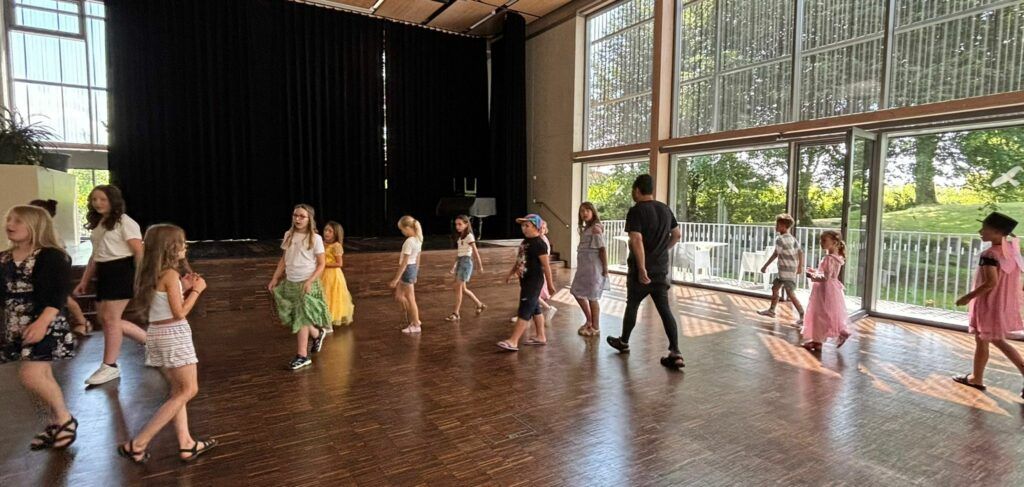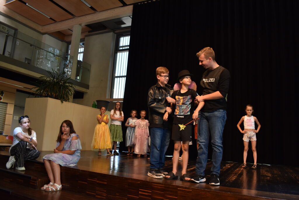 Alle Kinder wussten, dass sie zum Ende des Workshops ein komplettes Theaterstück vorführen würden, und so wurde fleißig geprobt, an Details gefeilt, Ratschläge umgesetzt. Christian Netti konnte alle wunderbar motivieren, nicht zuletzt mit jugendgerechter Sprache und dass man die Dialoge „flashiger hinbekommt“. Er suchte passende Musik zu den einzelnen Szenen, mit ganz viel Rhythmus und teils koketten Texten.