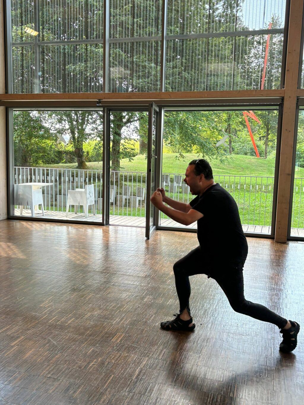 Wie beginnt man einen Theaterworkshop? Mit Bewegung, mit warm up, laufen, atmen, Arme hoch, hüpfen usw. Dann wurde die Mimik und Gestik eingeübt: Trauer, Wut, Freude. Es gab Partnerübungen, wo jeder eine Statue gestalten und benennen konnte.