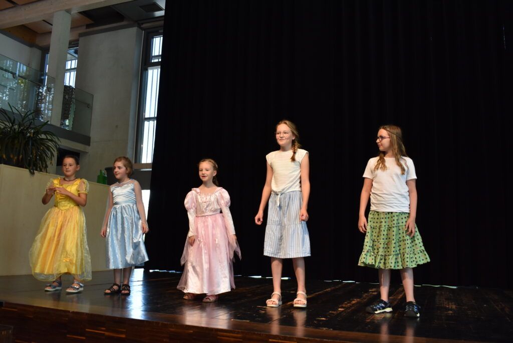 Die Kinder suchten selber ihre Kostüme aus, die sie dann am Freitag mitbrachten zur letzten Probe vor der Aufführung um 15.00 Uhr. Der Inhalt war im wörtlichen Sinn: Phantastisch! Da waren die Gangster, die sich eine neue Geschäftsidee ausdachten, um Geld zu machen. Eine Hausaufgaben-Fee namens Frieder erledigte alle Hausaufgaben der schönen Prinzessinnen.