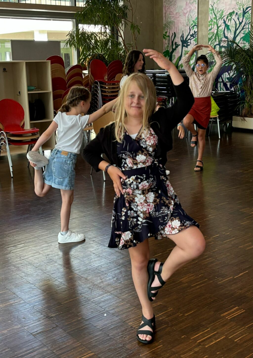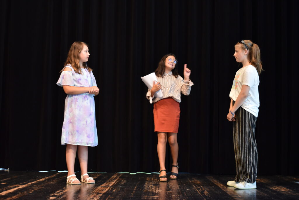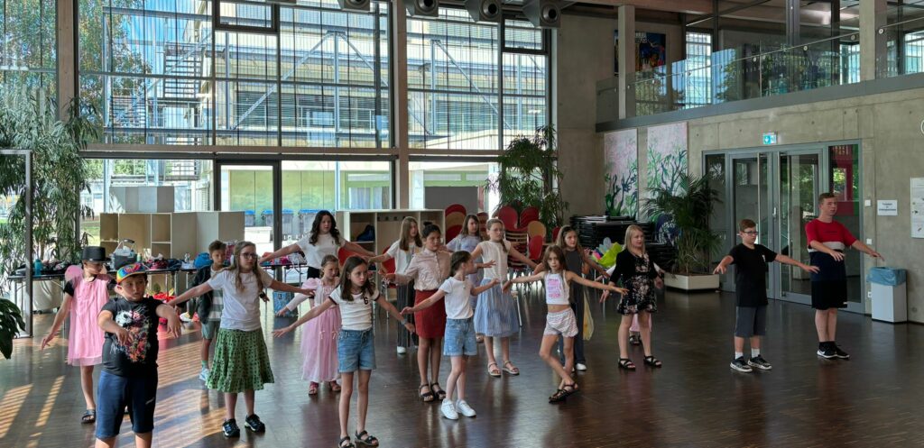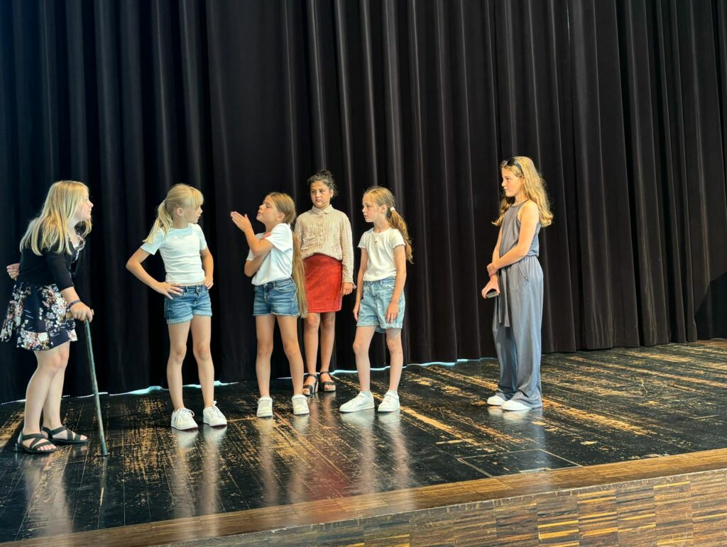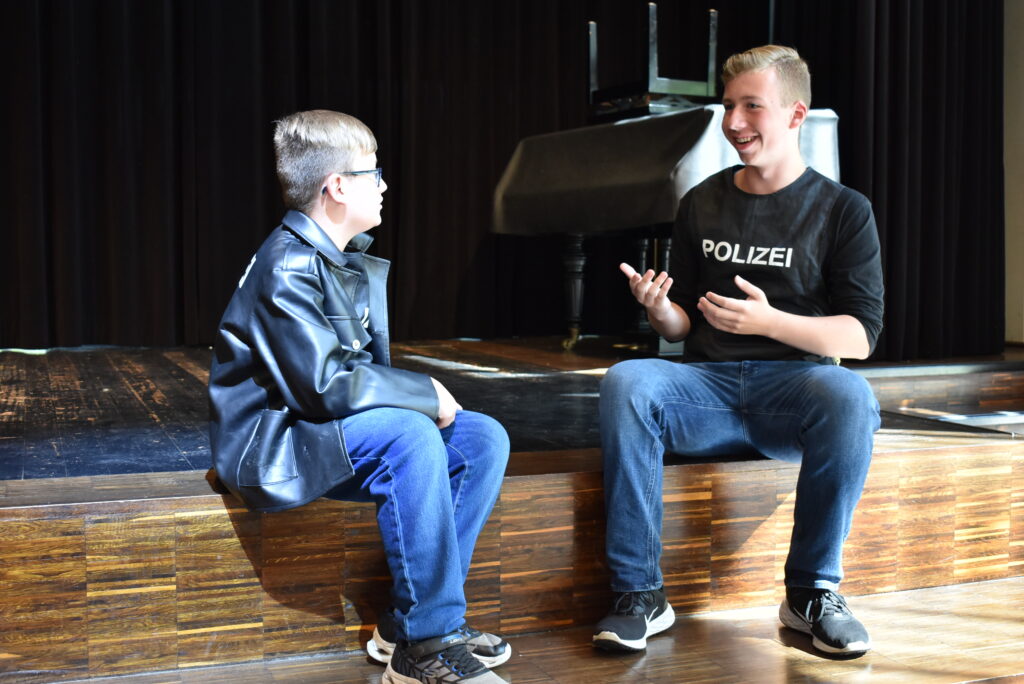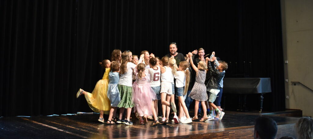 Alle Kinder wussten, dass sie zum Ende des Workshops ein komplettes Theaterstück vorführen würden, und so wurde fleißig geprobt, an Details gefeilt, Ratschläge umgesetzt. Christian Netti konnte alle wunderbar motivieren, nicht zuletzt mit jugendgerechter Sprache und dass man die Dialoge „flashiger hinbekommt“. Er suchte passende Musik zu den einzelnen Szenen, mit ganz viel Rhythmus und teils koketten Texten.
