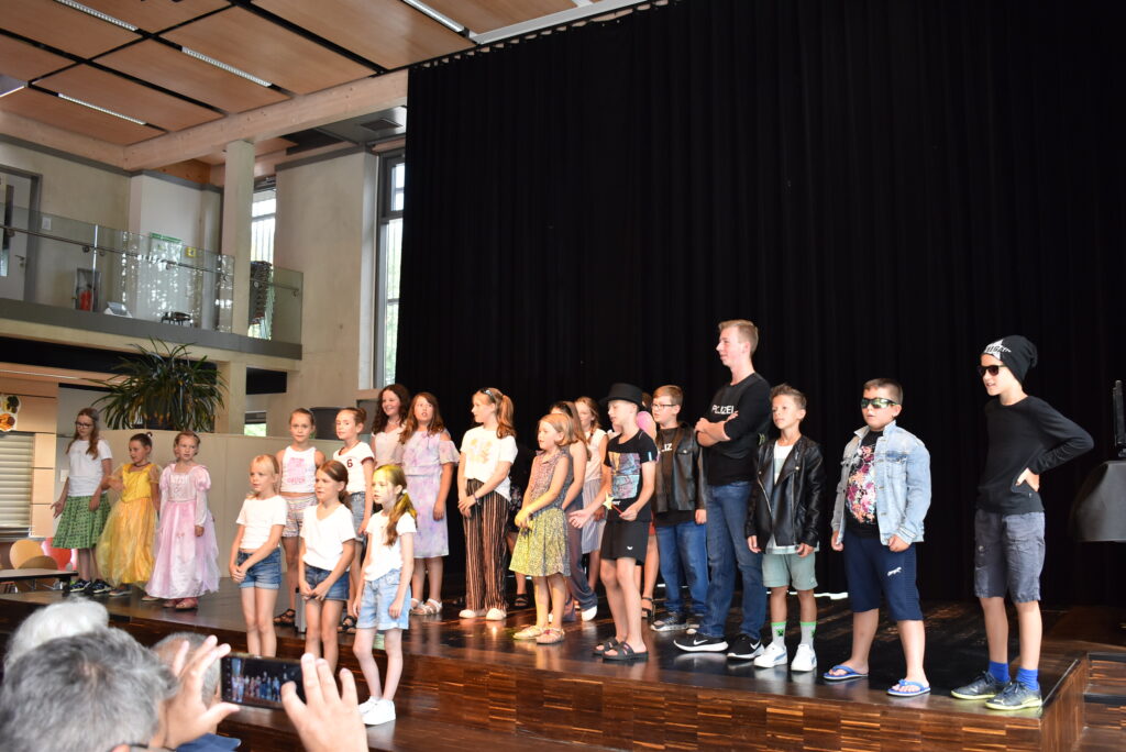 Die Kinder suchten selber ihre Kostüme aus, die sie dann am Freitag mitbrachten zur letzten Probe vor der Aufführung um 15.00 Uhr. Der Inhalt war im wörtlichen Sinn: Phantastisch! Da waren die Gangster, die sich eine neue Geschäftsidee ausdachten, um Geld zu machen. Eine Hausaufgaben-Fee namens Frieder erledigte alle Hausaufgaben der schönen Prinzessinnen.