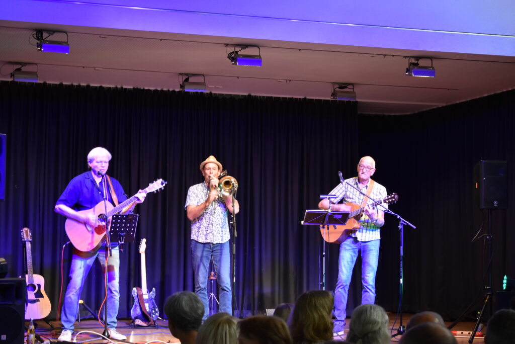 TAUTENHOFEN – Die Newcomer-Band mit erfahrenen Gitarristen und Sängern kam gleich super an: Leadsänger Peter Barensteiner aus Reichenhofen, Claus Dieng aus Leutkirch und Norbert Baur aus Niederrieden (Nähe Memmingen) traten in dieser Besetzung erstmalig unter dem Bandnamen „Allgäusommer“ auf die erste Kulturherbst-Bühne 2023 im Kultur- und GemeindeTreff in Tautenhofen, mit viel Leidenschaft und wenig Lampenfieber.