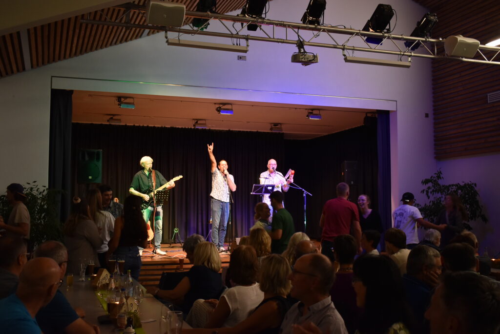 Da war auch mal ein Blues zu hören mit „so viel Trouble“ und der Peter zückte hin und wieder seine Posaune für den special sound. Norbert Baur gab sich ganz französisch mit der berühmten Champ Elysee. Ganz urig umgedichtet wurde der Song „Venus“ von Shocking Blue über Probleme im Büro, wenn der Drucker, des Glombb itt goht („You got it“). Beim umgetexteten „Wellerman“ stellte man sich die Frage, wer trinkt aus dem Schwabenmeer, natürlich die Stuage-deer (Stuttgarter).