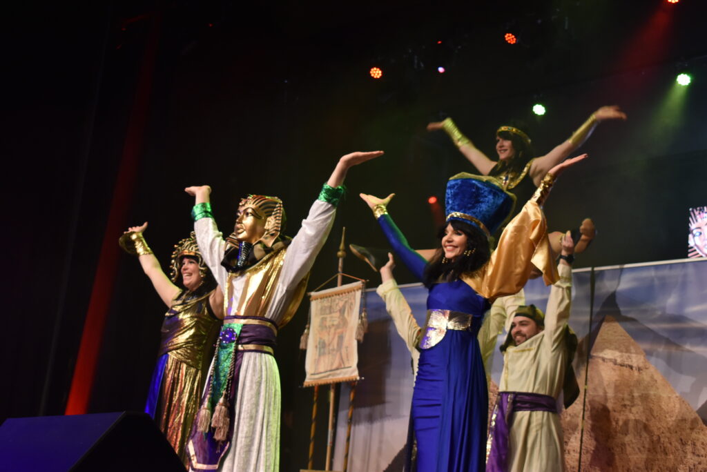 Den Auftakt machte traditionell die Prinzengarde mit flotten Tänzen unter der Leitung von Saskia Lamp. Die Gruppe Maskerade aus Neukirch überraschte mit einem Ausflug ins alte Ägypten. Pharaoninnen schwebten über den Köpfen des Volkes, Mumien tanzten sich frei, die sehr eindrucksvolle Choreografie wurde mit frenetischem Applaus belohnt. Eine Tanzrunde mit Italo-Hits sorgte für viel Bewegung beim Publikum.