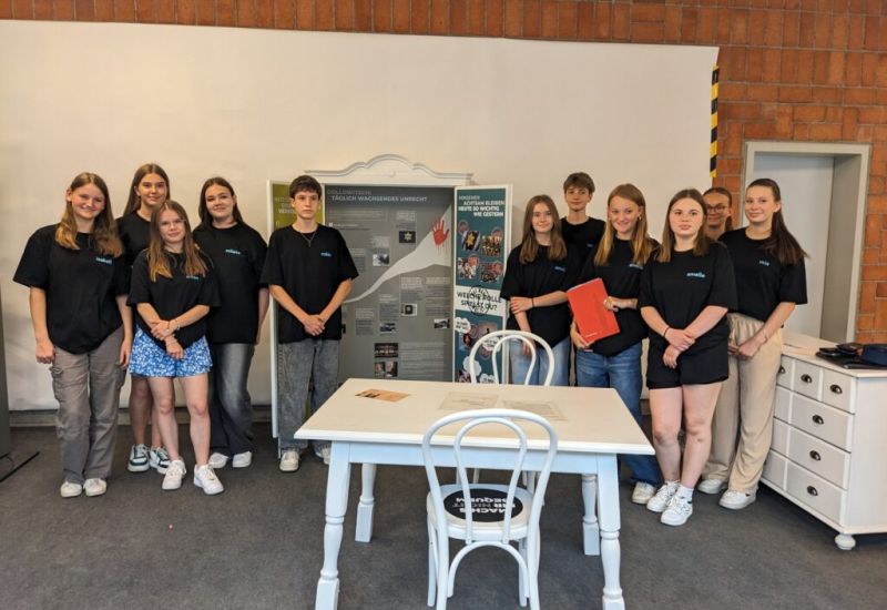 Eine von Jugendlichen neu gestaltete Ausstellung über die Familie Gollowitsch in Leutkirch und ihr Schicksal im Nationalsozialismus wandert nun zusammen mit der Statue jedes Jahr an eine andere weiterführende Schule. Und die OARS hat sich gleich ein ganz besonderes Projekt dazu ausgedacht: Ein Dutzend Schülerinnen und Schüler wurden zu sogenannten Peer Guides ausgebildet. Sie bieten nun Führungen durch die Ausstellung an.