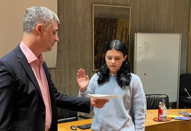 Leutkirch – Dienstagabend, 18. November, im Sitzungssaal des Verwaltungsgebäudes am Gänsbühl. Mit insgesamt 14 Leuten im Raum hört der Jugendgemeinderat, was Architektin Agnes Dransfeld über die Planungs-(Vor-)Arbeiten zum Ersatz-Neubau des Hans-Multscher-Gymnasiums (HMG) erläutert. Und zwar mit einem neuen Mitglied: Jana Pfau wird als neue Jugendgemeinderätin von Finanzbürgermeister Dr. Daniel Gallasch vereidigt.
