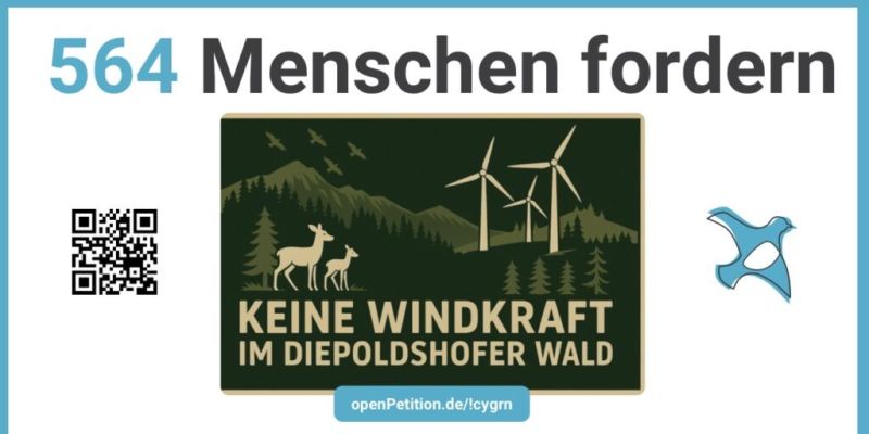 Diepoldshofen (rei) – Die am 17. Mai gestartete Online-Petition, die sich gegen die Errichtung von Windkraftanlagen im Diepoldshofer Wald richtet, hat – Stand 26. November, 18.00 Uhr – 564 Unterstützer-Unterschriften. Dies entnahmen wir der Webseite openpetition.de/!cygrn . 279 der Unterschreibenden sind laut der Petitionswebseite Einwohner Leutkirchs (Kernstadt oder Gesamtgemeinde – wird nicht eindeutig dargestellt); 52 Proteststimmen kommen aus Diepoldshofen und 54 aus Reichenhofen; 14 kom…