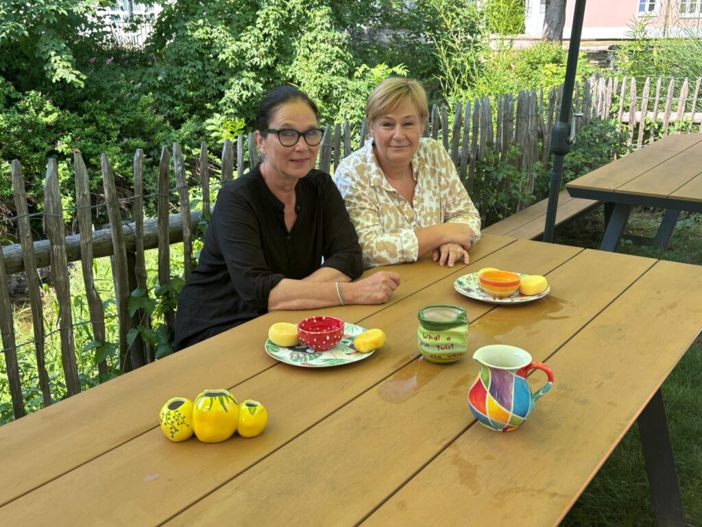 Christine Neuschel (rechts) und Conny Baeyer führen seit fünf Jahren das Keramik-Malstudio „Paint your Style“ in Leutkirch.