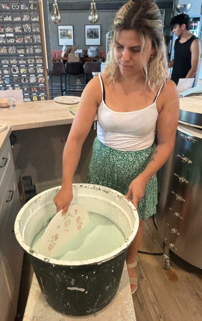 Übrigens: Butterdosen sind aktuell der Renner, aber auch Tortenplatten als Hochzeitsgeschenk – oft mit den Namen des Paares – oder Baby-Fußabdrücke und vieles anderes mehr. Hochsaison ist natürlich vor Weihnachten und Ostern, zum Mutter- oder Vatertag. Dennoch ist das ganze Jahr über was los, ganz wetterunabhängig.