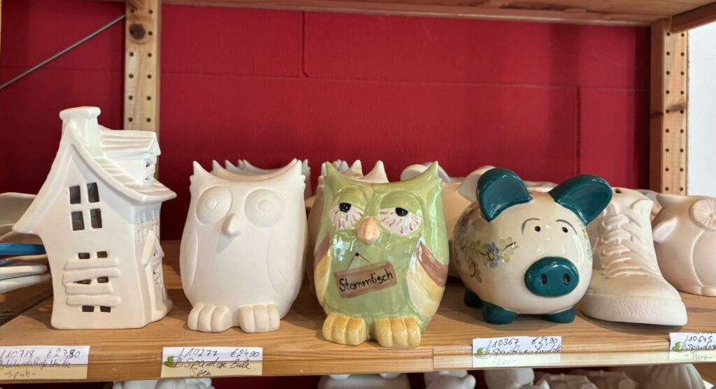„Es ist manchmal unglaublich, was hier entsteht. Menschen, die denken, sie können gar nicht malen, zeichnen oder kreativ sein, die blühen plötzlich auf und malen oder gestalten die schönsten Dinge.“ Und sie wissen auch: „Ein schönes Ergebnis baut auf, vor allem, wenn das Objekt erst mal glasiert und gebrannt ist.“