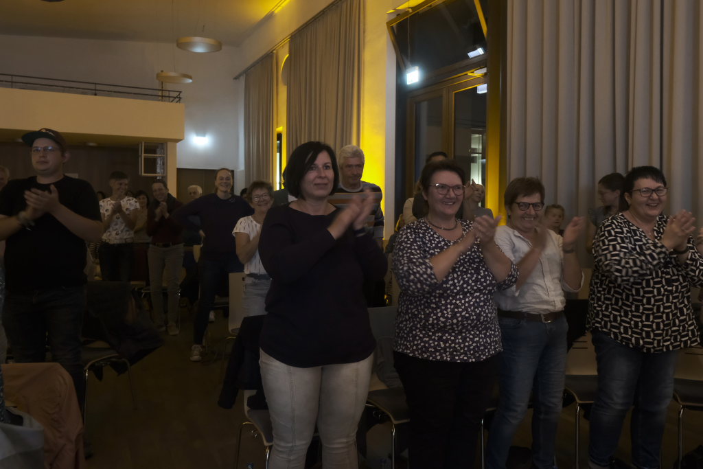 Als dann kurz nach 19.30 Uhr Lisa Burger vom Vorstandsteam des Frauenbundes Alttann in dem im Club-Style bestuhlten Festsaal die Gruppe ankündigte, wurden die Musiker bereits mit begeistertem Applaus begrüßt, denn viele Wurzacher machten den Auftritt zu einem Heimspiel für die „A-Cappella Bänd“.