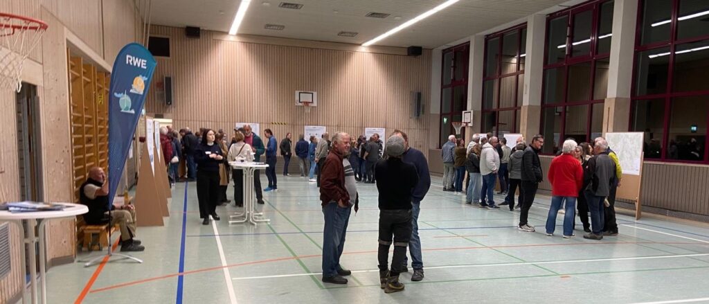 „Dass man ins Gespräch gekommen ist” am Mittwochabend in der Sporthalle Wuchzenhofen, findet RWE-Planerin Sara Berdias „super”. Könnte es sein, dass manche Besucherinnen und Besucher der RWE-Infoveranstaltung Zweifel hegten, weil Greenpeace noch vor Jahren die RWE wegen deren Kohlekraftwerken als „Europas größte Dreckschleuder” bezeichnet hatte? Da kann Berdias „nur für mich sprechen” Sie selbst „stehe nur für die Windkraft”. Und RWE insgesamt habe einen Richtungswechsel hin zu Erneuerbaren Energien vollzogen. Wie genau, das erläutert RWE-Sprecherin Viola Baumann am Donnerstagvormittag (6. November) gegenüber der Bildschirmzeitung so: „Mit ihrer Investitions- und Wachstumsoffensive trägt RWE maßgeblich zum Gelingen der Energiewende und zur Dekarbonisierung des Energiesystems bei. Im Bereich Erneuerbare Energien ist RWE eines der führenden Unternehmen. RWE investiert Milliarden in den Ausbau ihres Erzeugungsportfolios, vor allem in Offshore- und Onshore-Wind, Solarenergie und Batteriespeicher. Mit ihrem integrierten Portfolio aus Erneuerbare-Energien-Anlagen, Batteriespeichern und flexibler Erzeugung sowie einer breiten Projektpipeline an möglichen Neubauten ist RWE perfekt aufgestellt, um dem weltweit steigenden Strombedarf zu begegnen, der insbesondere durch die fortschreitende Elektrifizierung und künstliche Intelligenz vorangetrieben wird. RWE dekarbonisiert ihr Geschäft im Einklang mit dem 1,5-Grad-Reduktionspfad und steigt 2030 aus der Kohle aus. Bis 2040 wird RWE klimaneutral sein.“ Soweit RWE-Sprecherin Viola Baumann.