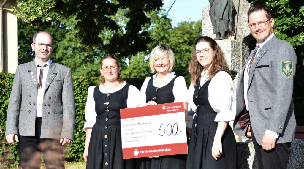 Mit Geschenken zeigten sich die Redner großzügig. Auch die Kreissparkasse Ravensburg unterstützt den Verein zum Jubiläum wohlwollend mit 500 Euro (Bild).