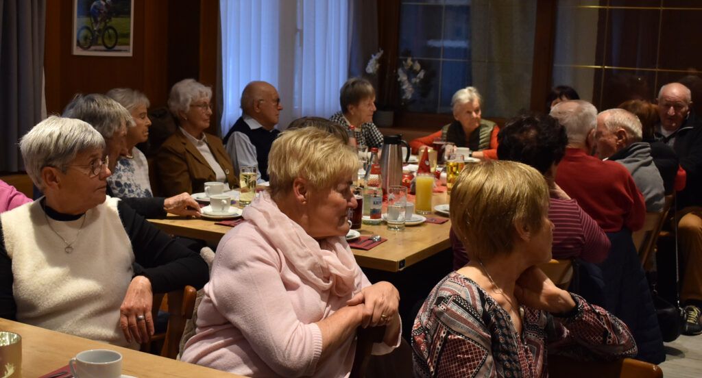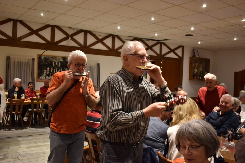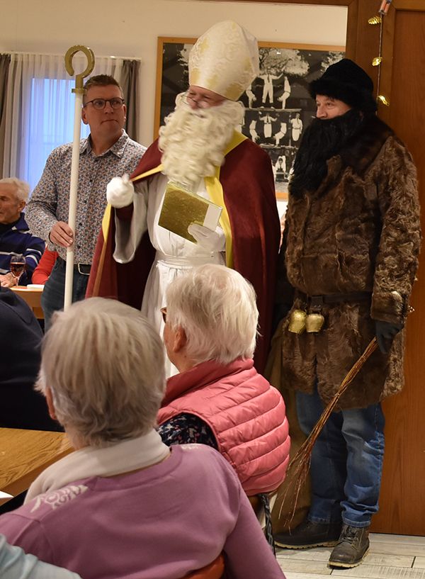 Die Mitglieder ließen es sich schmecken, unterhielten sich angeregt, und es wurden einige Weihnachtslieder gesungen, begleitet von Mitglied Herbert Frischknecht am Akkordeon. Plötzlich wurde es still im Raum, ein stattlicher Nikolaus mit Knecht Ruprecht betraten das Lokal. Aus dem goldenen Buch wurden natürlich keine Schandtaten verlesen, sondern nur Gutes über die Aktivitäten im Verein. Der Nikolaus lobte und beschenkte Funktionäre sowie die Organisatoren der Wander- und Radgruppen Hubert Biechele und Herbert Wiggers.