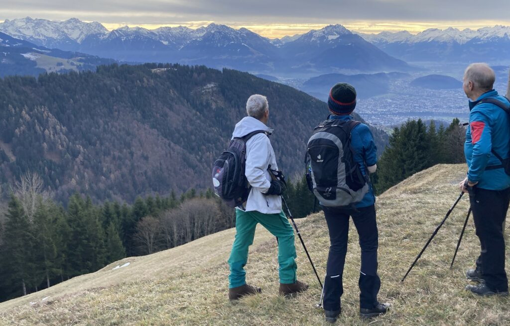 Leutkirch – In vielen Skigebieten hat die Saison begonnen. Die Seniorengruppe des Alpenvereins Leutkirch nutzt den Winter auch gerne für Wanderungen. Ein besonders lohnendes Ziel für vier Teilnehmer zwischen 65 und 80 Jahren bot am 11. Dezember die Hohe Kugel.