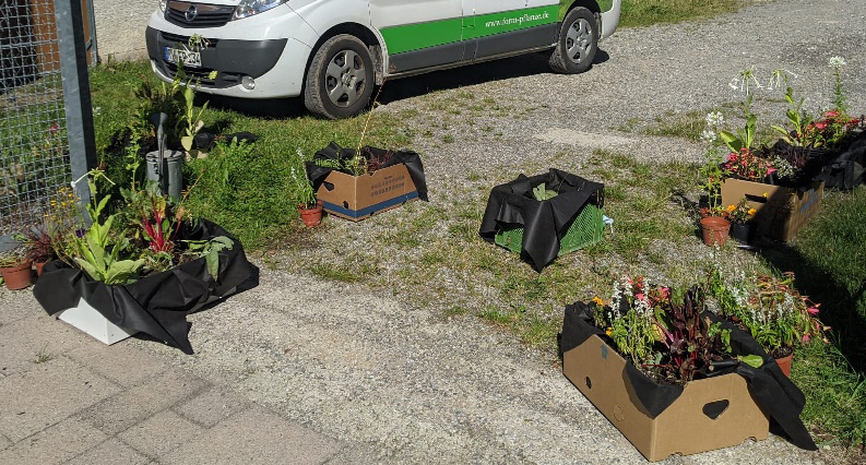 Von den Kindern bepflanzte Kisten.