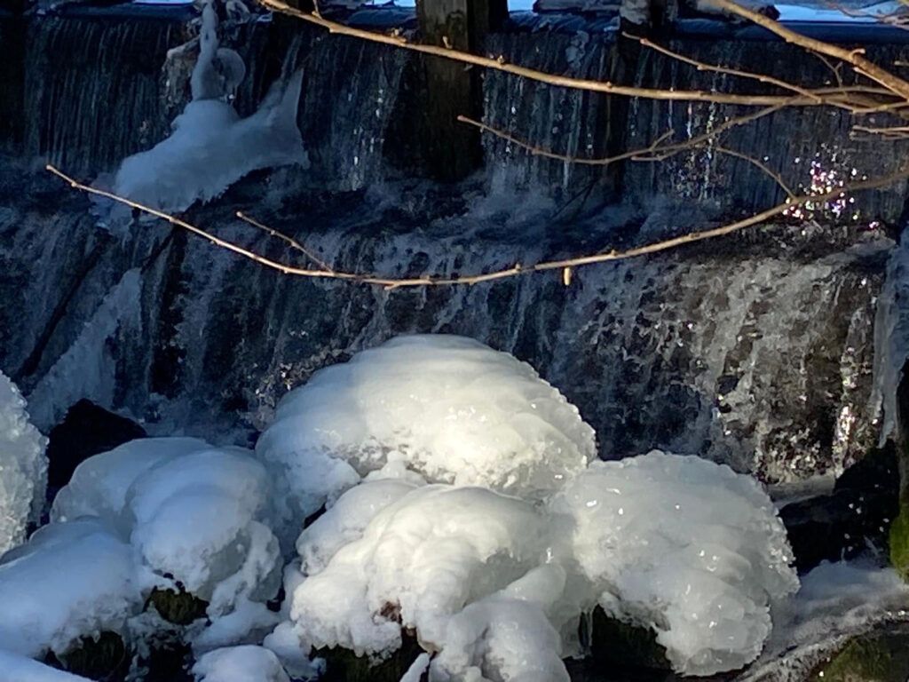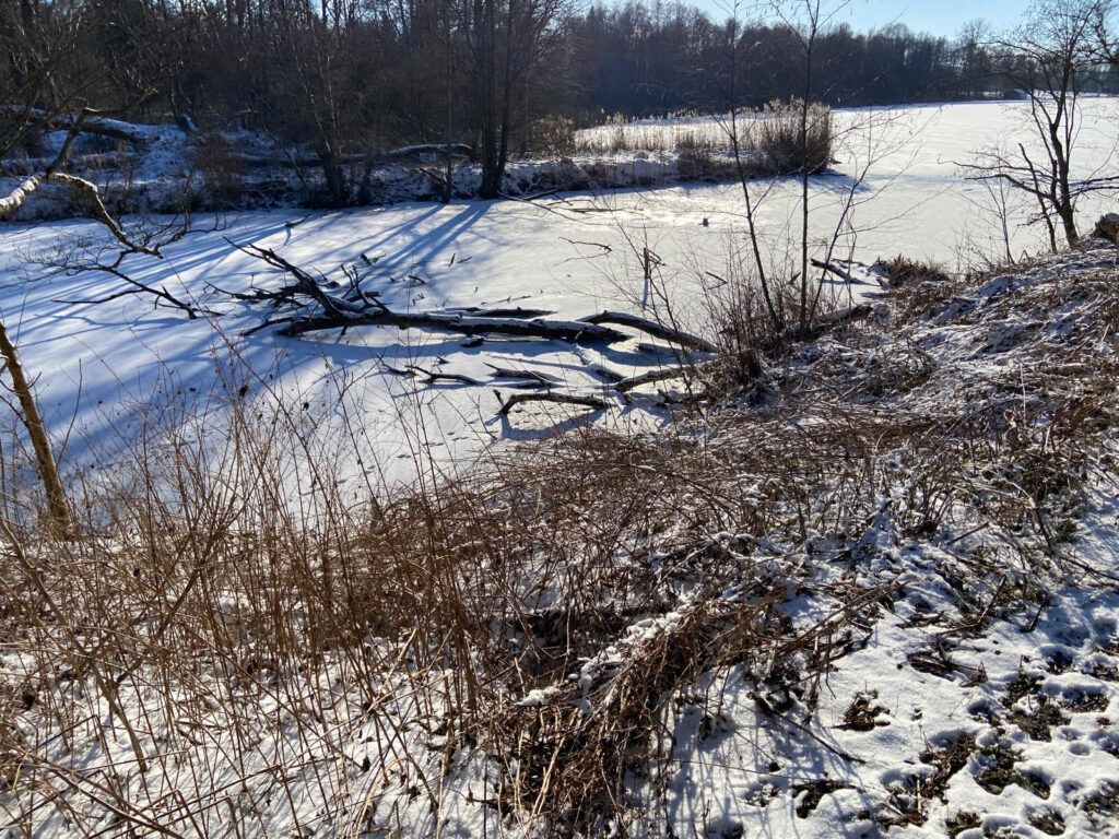 „Betreten des Stadtweihers verboten”. So steht’s unmissverständlich auf dem Schild am Uferdamm des Sees. Vorsicht ist geboten. Das gefrorene Wasser und viele bemerkenswerte Uferbereiche sind auch von den offiziellen, geräumten Gehwegen um den Stadweiher aus zu betrachten. Teils mit Ski-Loipe. Darüberhinaus finden sich geschichtliche Zeitzeuginnen – wie die Moosmühle am Bach-Zulauf des Weihers. Dort verraten Infotafeln etwas über den Bau.