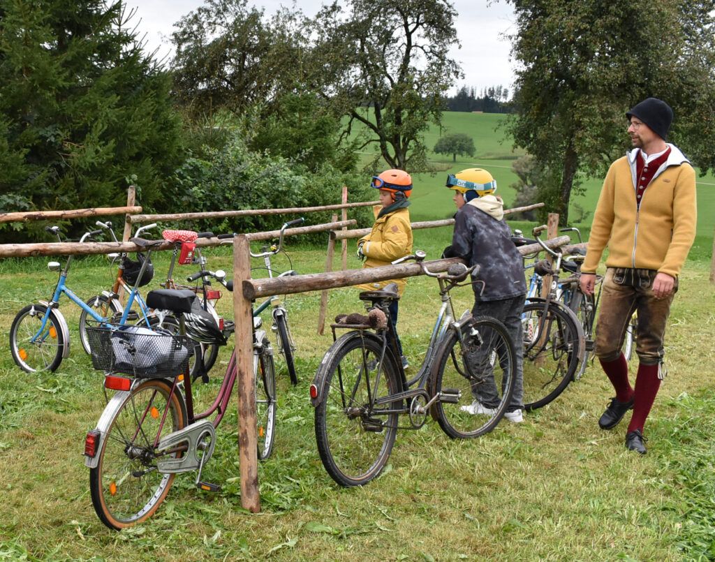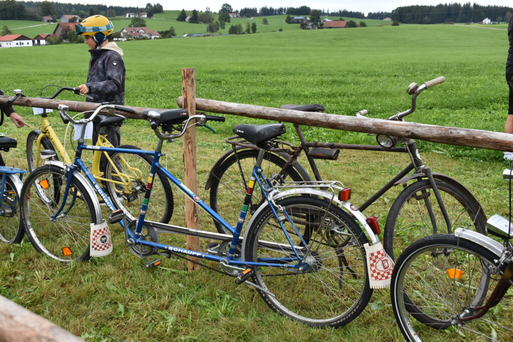 Wielazhofen – Freitagabend, 17.30 Uhr – noch ist es ganz ruhig im Weiler Wielazhofen. Doch dann kommen sie nach und nach aus allen Richtungen, Radler mit Rädern, die wie aus der Zeit gefallen sind, schwer tretend, nicht so leicht, wie mit einem E-Bike der modernen Zeit. 60 Teilnehmer messen sich dann auf 2200 Metern über Feldweg und Heuballen, bis zum Ziel am Rottmar-Hof. Alle kamen gut an, trotz kleinen Hindernissen.