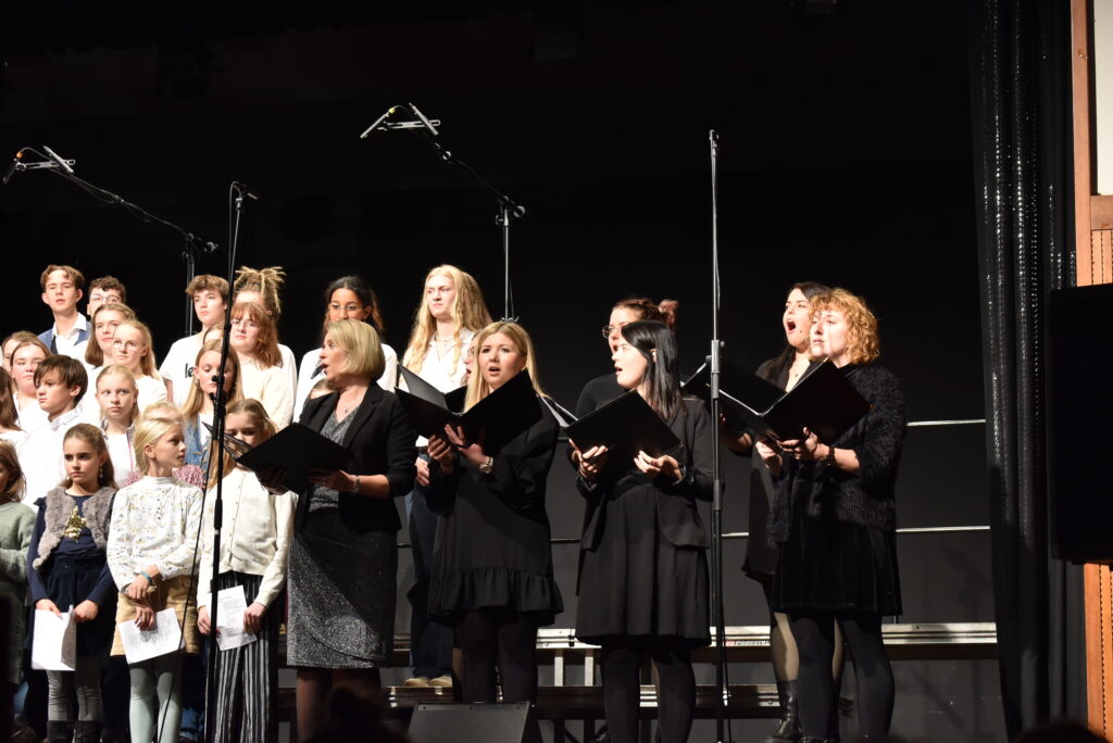 Als Höhepunkt erklang der bekannte Song von Michael Jackson „Heal the world“, zu dem zwei jugendliche Solisten hervortraten. Alle Chöre sangen mit und nicht wenige Zuhörer summten das Lied, das Gänsehaut macht. Sehr lange wurde geklatscht für all die tollen Sänger/innen mit Solistin und dem „Mann am Klavier“. Brigitte Göser überreichte Geschenke, dankte allen Mitwirkenden, dem Publikum und erklärte, wofür die Spenden vorgesehen sind: zur Hälfte für den Kinder- und Jugendchor, zur Hälfte für die Caritas, um Familien, die in Not geraten sind, zu unterstützen.