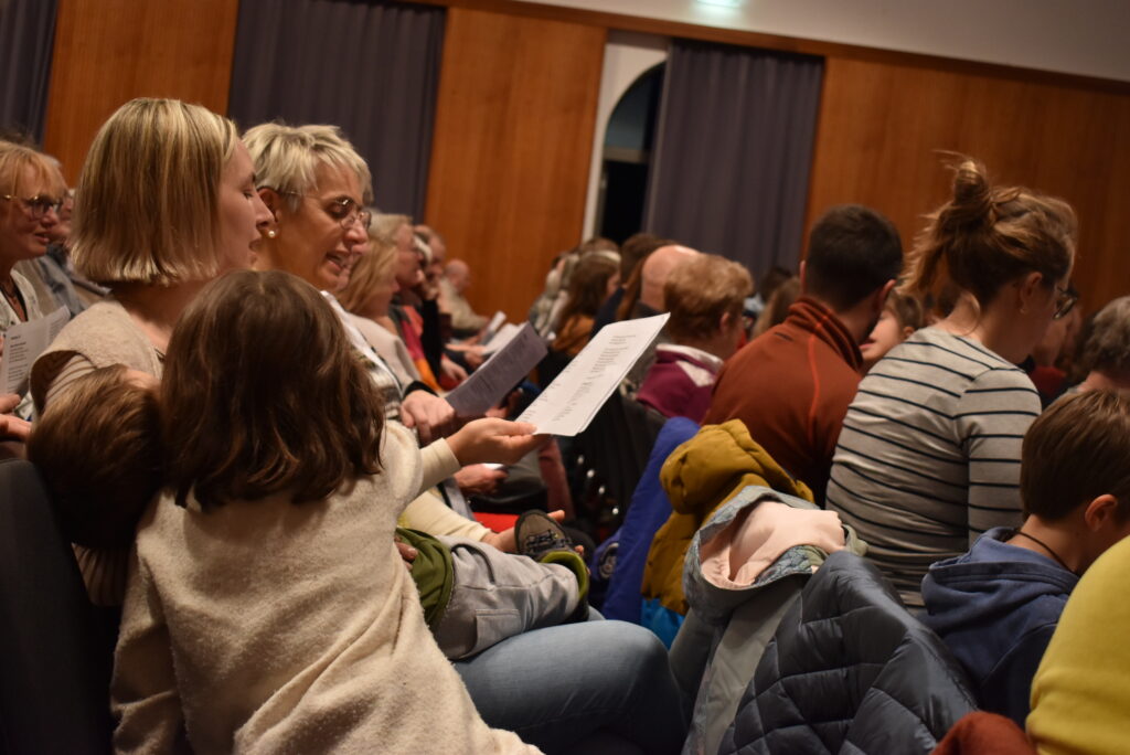 Dann stellten sich die jungen “Martinsspatzen” musikalisch vor und zeigten ihr Können bei frisch-fröhlichen Liedern. Ebenso tat es der gemischte Jugendchor mit kräftigen Stimmen und gut einstudierten Liedern. Franz Günthner führte durchs Programm und lud zu einem zweiten Medley ein, die Texte lagen aus. Dem Publikum machte das Singen sichtlich Spaß, so dass der gewitzte KMD schon bald ein großes Potential sah und zu den Proben 2025 der verschiedenen Kantorei-Chöre einlud.