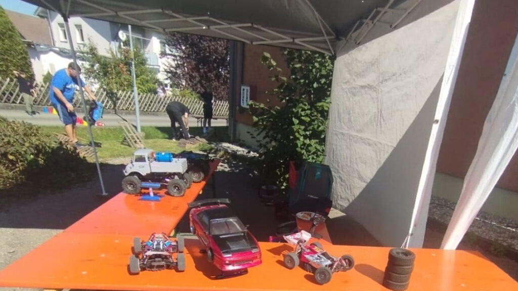 Im Freigelände gab es neben einem Pavillon ferngesteuerte Modellautos zu sehen. In einem speziell für Geländefahrzeuge aufgestellten Parcours konnten die Fahrzeuge ihre Fähigkeiten unter Beweis stellen. Auch Besucher konnten hier selbst ihre Fahrkünste erproben. Beim nachfolgenden Stand waren Modellschiffe von Matthias aus Urlau zu sehen und zu bestaunen. Neben fertigen Schiffen war auch ein im Bau befindliches Segelboot zu sehen. Neben den Schiffsmodellen hat die Firma Allgäu Tec einen 3D Drucker mit etlichen ausgedruckten Beispielen ausgestellt. Der Drucker war aktiv dabei, eine kleine Lokomotive herzustellen. Mit einem 3D Drucker können auch viele Teile für den Modellbau hergestellt werden. Interessenten können sich an Stefan Leinmüller, Algäu Tec, wenden. Viele Modellflugzeuge der Modellfluggruppe Leutkirch waren im anschließenden Zelt zu sehen.