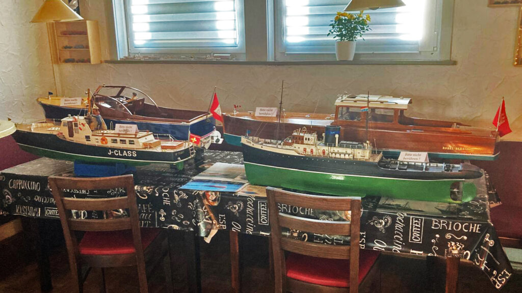 Neben den unterschiedlichen Modellen war auch eine „fliegende Gitarre“ ausgestellt. Auf einem Bildschirm wurden Aufnahmen von Flügen gezeigt. Die Modellfluggruppe betreibt, in der Nähe von Bimmlings bei Hofs, einen Flugplatz speziell für Modellflugzeuge. Interessenten sind dort gerne gesehen und willkommen. Im Modellbahnstüble stellte Norbert aus Urlau einen Teil seiner Schiffe aus. Diese Schiffe wurden sehr originalgetreu nachgebaut. Auf einem Notebook konnte man einige Videos von Fahrten sehen. Bei allen Ausstellern wurden fachkundige Gespräche geführt. Adressen und Ansprechpartner der einzelnen Aussteller werden auf Anfrage mitgeteilt. Hierzu ist ein Mail an: