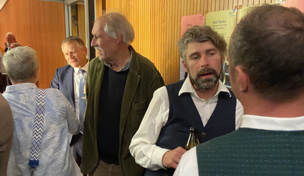 Alois Peter im Gespräch mit Hedwig Seidel-Lerch, ehemalige Schulleiterin, und Michael Waizenegger (Heimatpflege).