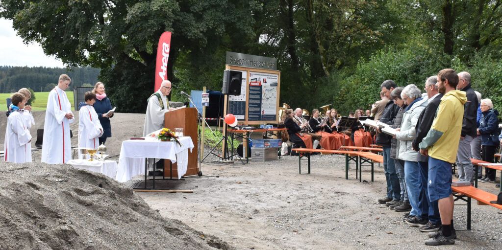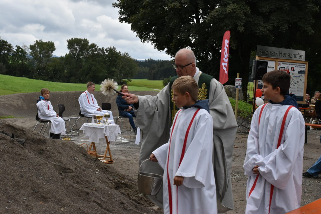 Herlazhofen – Zur Heiligen Messe direkt am neuen Bikepark war der Himmel noch bedeckt, doch pünktlich zur Eröffnungsfeier am vergangenen Sonntag (15.9.) strahlte die Sonne und tauchte das Fest und den Parcours in herrliches Licht. Nach vielen lobenden Gruß- und Dankesworten hatten unzählige Kinder und Jugendliche ihren Spaß im Bikepark, sausten ihre Runden, zeigten Kunststücke und die älteren sogar etliche Salti mit dem Radl. Die Herlazhofer verstanden es wieder einmal, etwas gemeinsam auf die Beine zu stellen, und ein schönes Fest zu feiern.