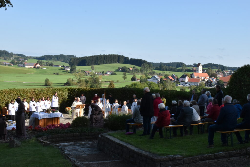 Nach vielen gemeinsamen Liedern und dem Segen ging es für etliche noch ins Haus der Mitte nach Engerazhofen zum Mittagessen und Kaffee mit Kuchen. Um 14 Uhr fand die traditionelle Marienandacht in der Kapelle La Salette statt, ebenfalls zelebriert von Dekan a.D. Heinz Leuze.