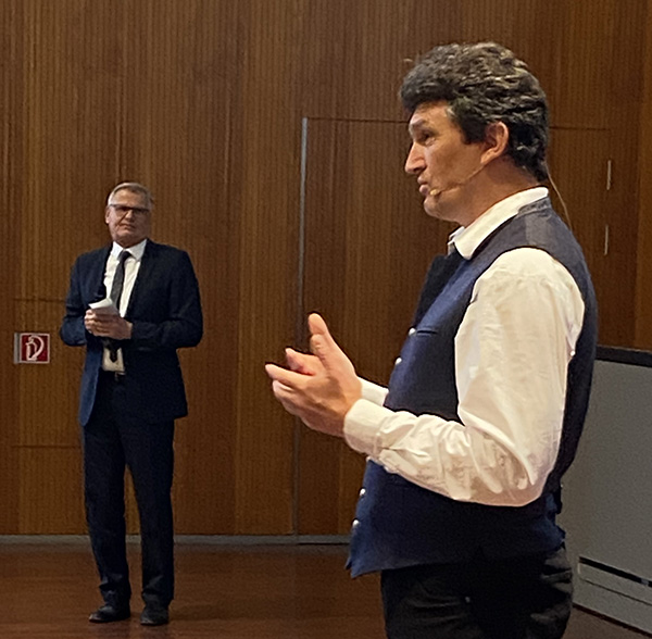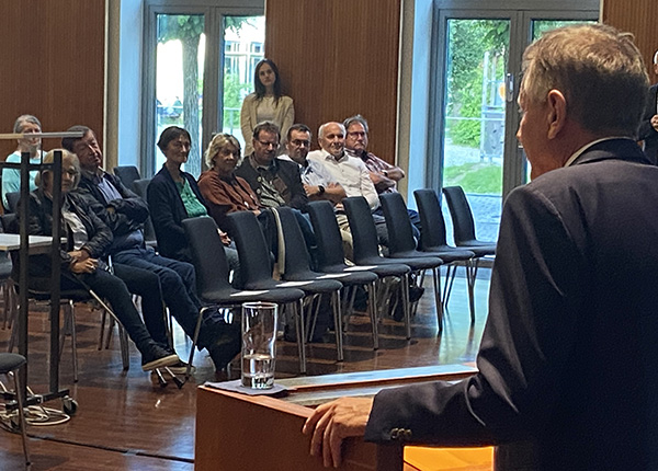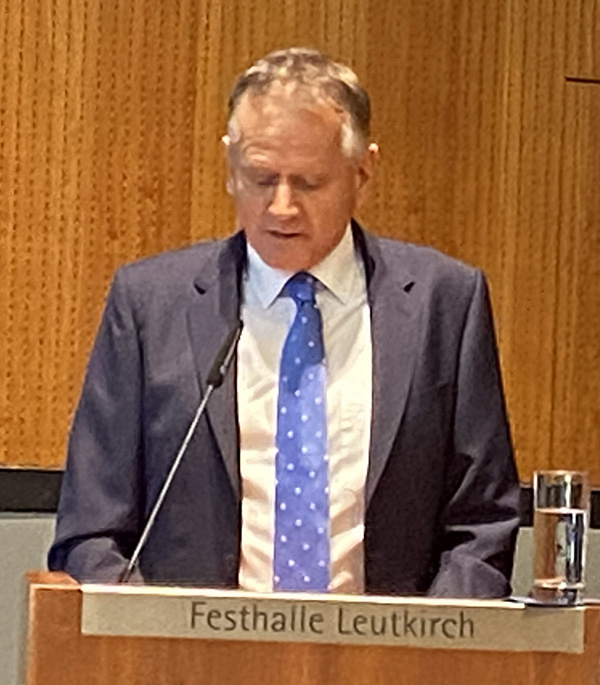 Franz Josef Natter-Babych spricht. Im Hintergrund Moderator Karl-Anton Maucher. Foto: Julian Aicher