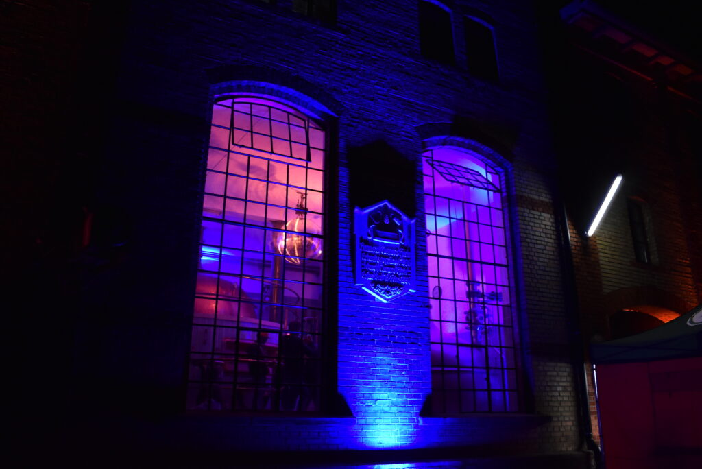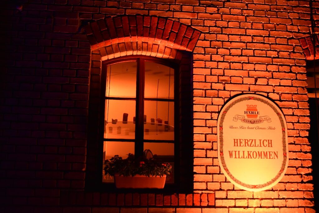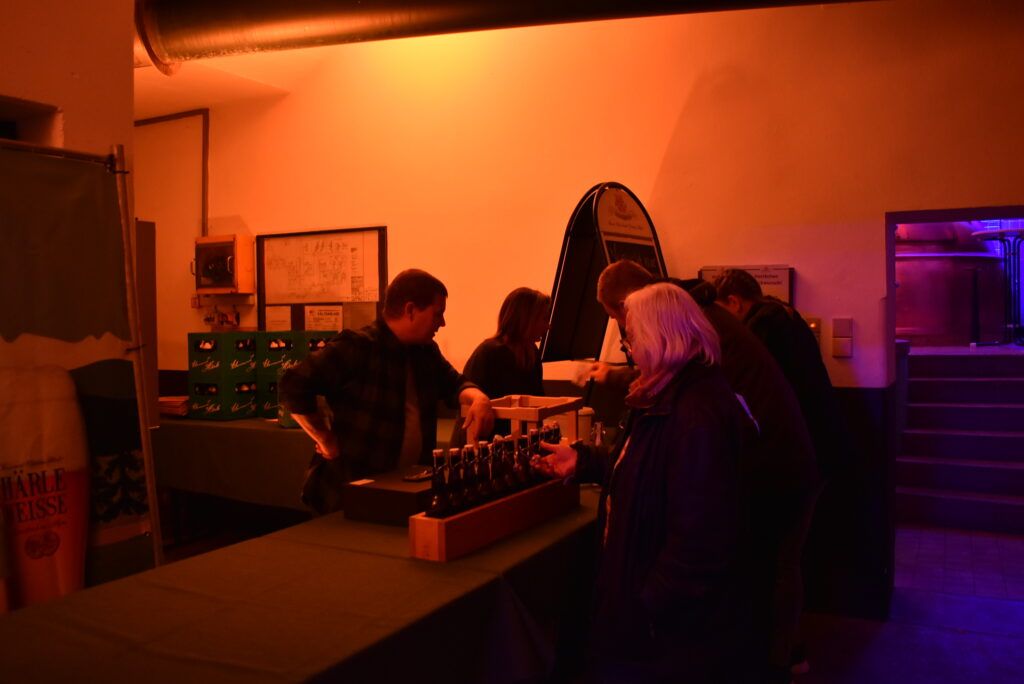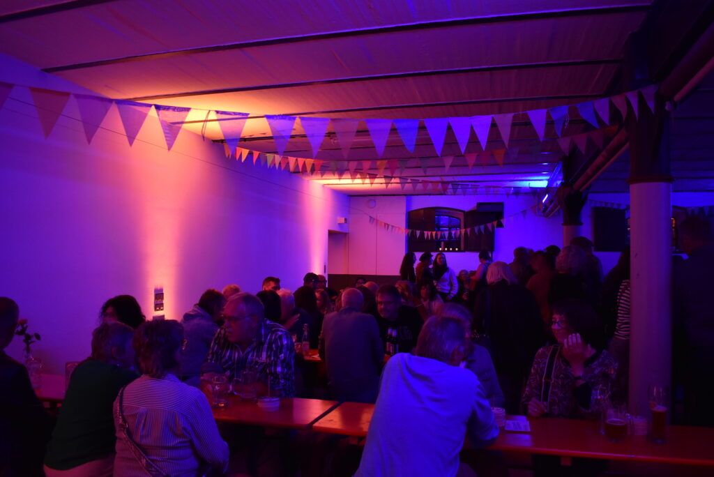 “Häreinspaziert”! Schon von der Wangener Straße aus zeigte sich das alte Brauereigebäude aus dem Gründungsjahr 1897 erhellt. Allerhand Leuchten strahlten seine Ziegelwand bunt an. Wer sich vor der Feierwelt dort drinnen noch stärken wollte, konnte draußen zwischen frisch gegrillten Wüsten und direkt erhitzten Kässpätzle wählen. Drinnen bot derweil allerhand Flüssiges beinahe eine Qual der Wahl.